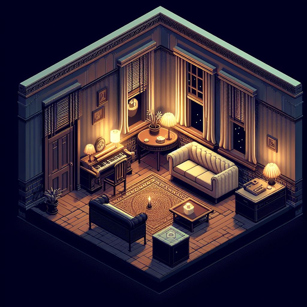 - 10.-Despacho del Gerente: Oficina lujosamente decorada con una gran mesa de madera y una chimenea, varios cuadros en ambas paredes, una librería con varios libros de poco valor y una mesita con dos copas y una botella de bourbon. Prueba de Descubrir (Difícil) o Arte Arquitectura (Normal) para identificar una compuerta secreta tras un cuadro, dentro de esta libreta hay un sobre que contiene la receta, si los investigadores han obtenido esta información anteriormente es recomendable omitir la tirada.