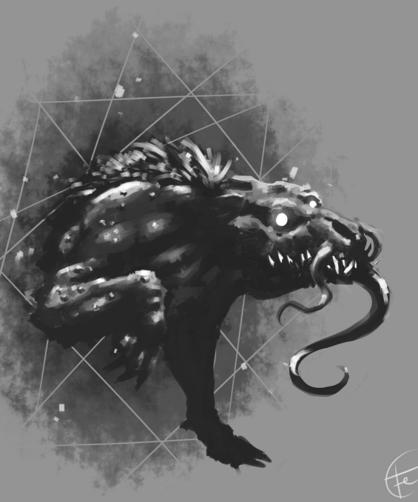 | CACHORRO DE TINDALOS -Puntos de vida: 19 -Todas las características tienen -10 puntos respecto de la media excepto DES que se quedaría igual -El pus azulado aún no está totalmente desarrollado, causa 1D6 -Los puntos de POD causados por la lengua no son permanentes -Las armas normales causan la mitad de daño al cachorro (a diferencia de un perro de tindalos totalmente -desarrollado que sería inmune) -Armadura 1 punto de piel y regeneran 2 por asalto -Las microondas le paralizan (aletargan) un asalto, si es atacado con un arma de microondas, este investigador será su próxima víctima siempre que sea posible. |